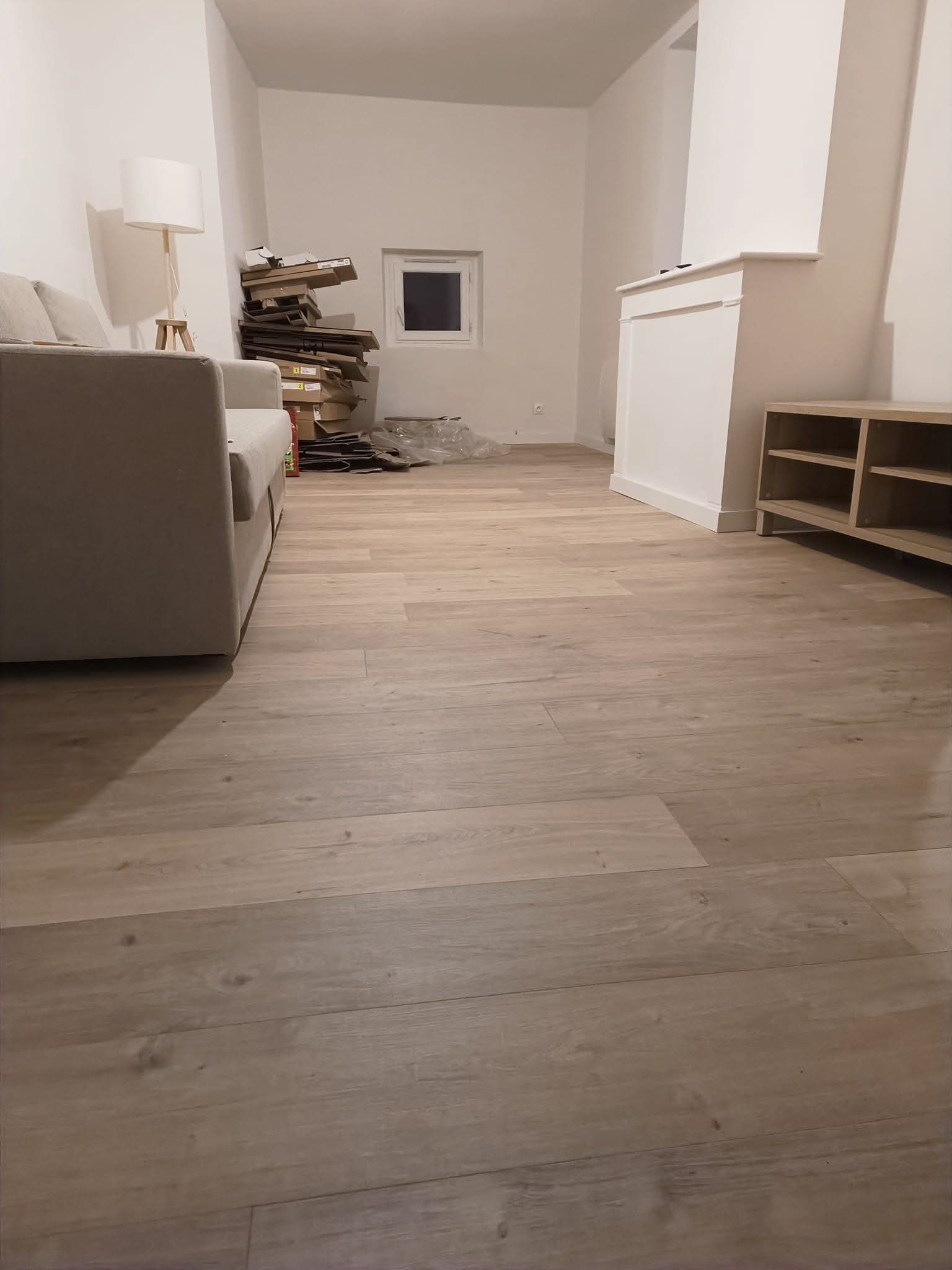 Pose de parquet flottant, stratifié ou sols souples PVC. Finitions soignées et pose de plinthes.